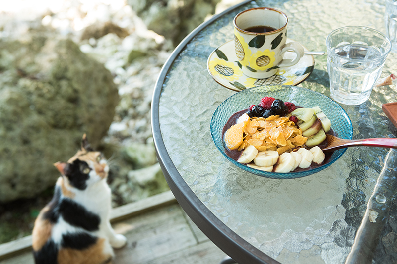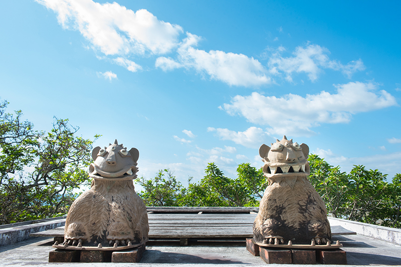 知念岬公園で夜明け前からスタンバイしていると、水平線が徐々にピンク色に染まり、神の島・久高島のシルエットが浮かび上がってきた。やがて太陽が姿を表すと、周囲の景色は一変する。今まで暗く沈んでいた海や木々が光を受けてカラフルに輝き始め、生命力に満ちあふれてゆく。私も朝一番の澄んだ光を浴びて、身体いっぱいにエネルギーをチャージできた気がした。