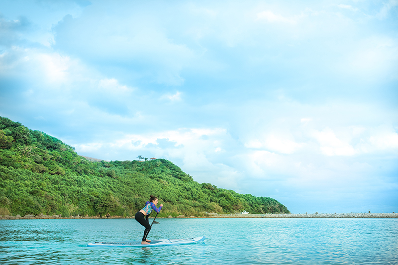 波に揺れるボードの上に立つのは、緊張の一瞬。でも、田中さんの丁寧な指導のおかげで、SUP経験がほとんどない私でもすぐに立って漕げるようになった。海の上で波のゆらぎを感じていると、まるで自分が海の一部になったような不思議な気分。日頃の疲れやストレスが全部水の中に溶けて、流れていくように思えた。