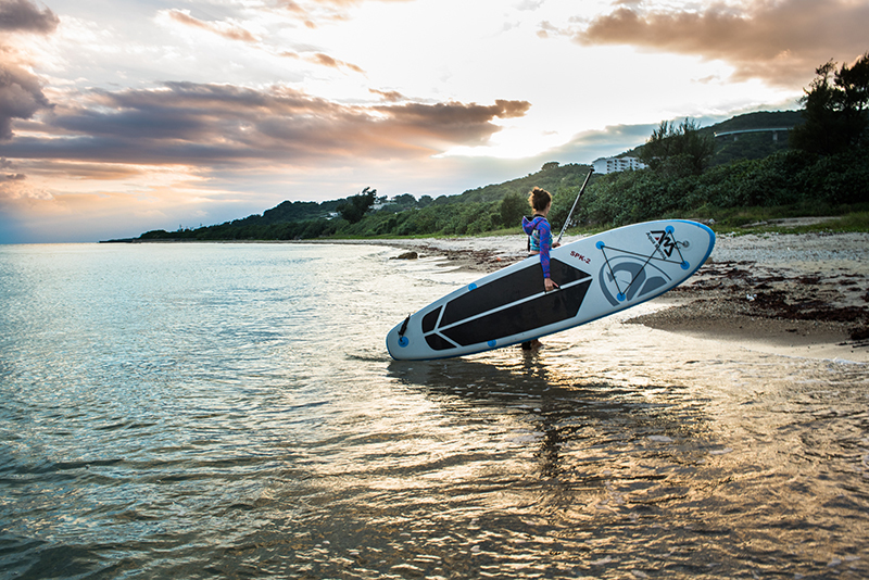 夕暮れ時の海でドラマチックなSUP体験